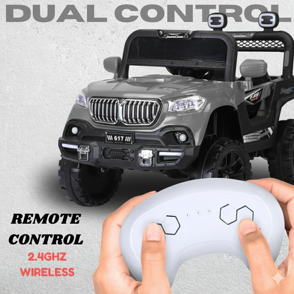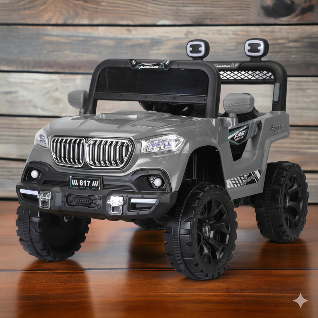 ZIZI TOYS Battery Operated Jeep for Kids, Ride on Toy Kid Car with Light & Music | Electric Jeep Battery Cars | Baby Big Car for Kids to Drive 3 to 9 Years Boys Girls (PKQ617 GREY)