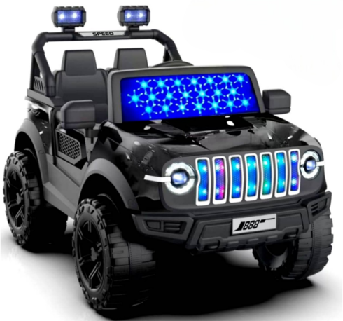 ZIZI TOYS Battery Operated Jeep for Kids, Ride on Toy Kid Car with Light & Music | Electric Jeep Battery Cars | Baby Big Car for Kids to Drive 3 to 9 Years Boys Girls (21-108 BLACK)