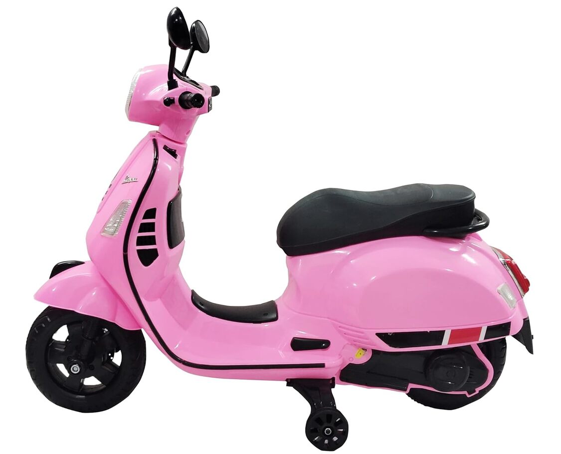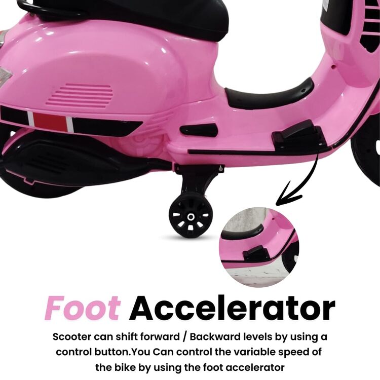 ZIZI TOYS Vespa 12v Battery Operated Rechargeable Ride On Scooter with Foot Accelerator for Kids, 2 to 8 Years, Pink