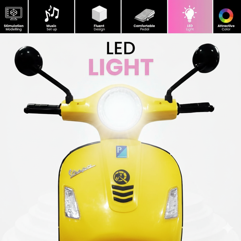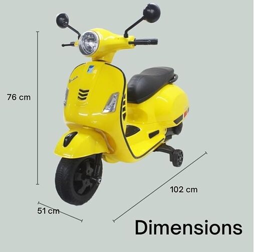 ZIZI TOYS Vespa 12v Battery Operated Rechargeable Ride On Scooter with Foot Accelerator for Kids, 2 to 8 Years, Yellow